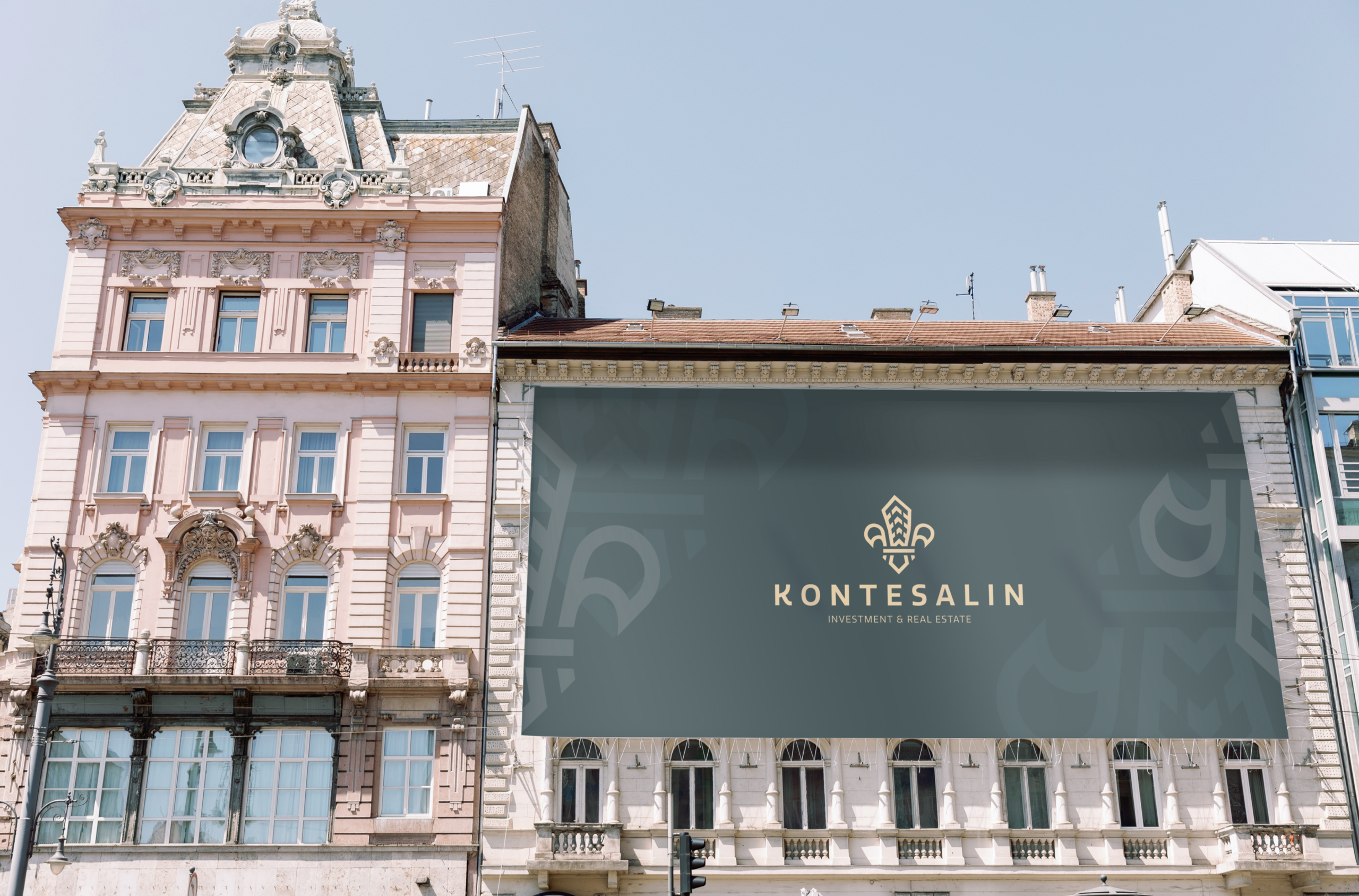 1. Logotipo: La Heráldica como Sello de Solvencia Diseñé el núcleo de la identidad como una reinterpretación contemporánea del escudo de la familia Kontesalin, integrando las flores de lis originales en una estructura geométrica depurada.